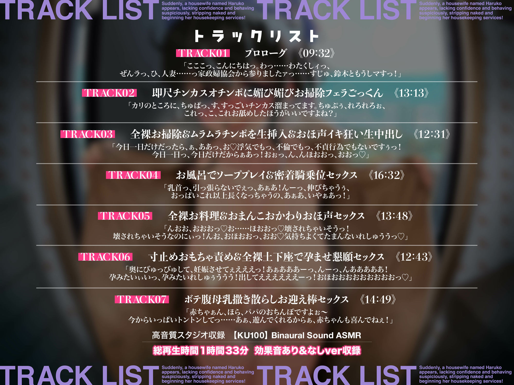 ジャンル: 人妻・主婦、巨乳、寝取り・寝取られ・NTR、中出し、ラブラブ・あまあま、男性向け、成人向け、ASMR、妊娠・孕ませ、KU100、野外・露出、退廃・背徳・インモラル