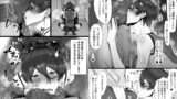 巴の耳舐め手コキで主人公は、我慢汁を垂らしてしまう。