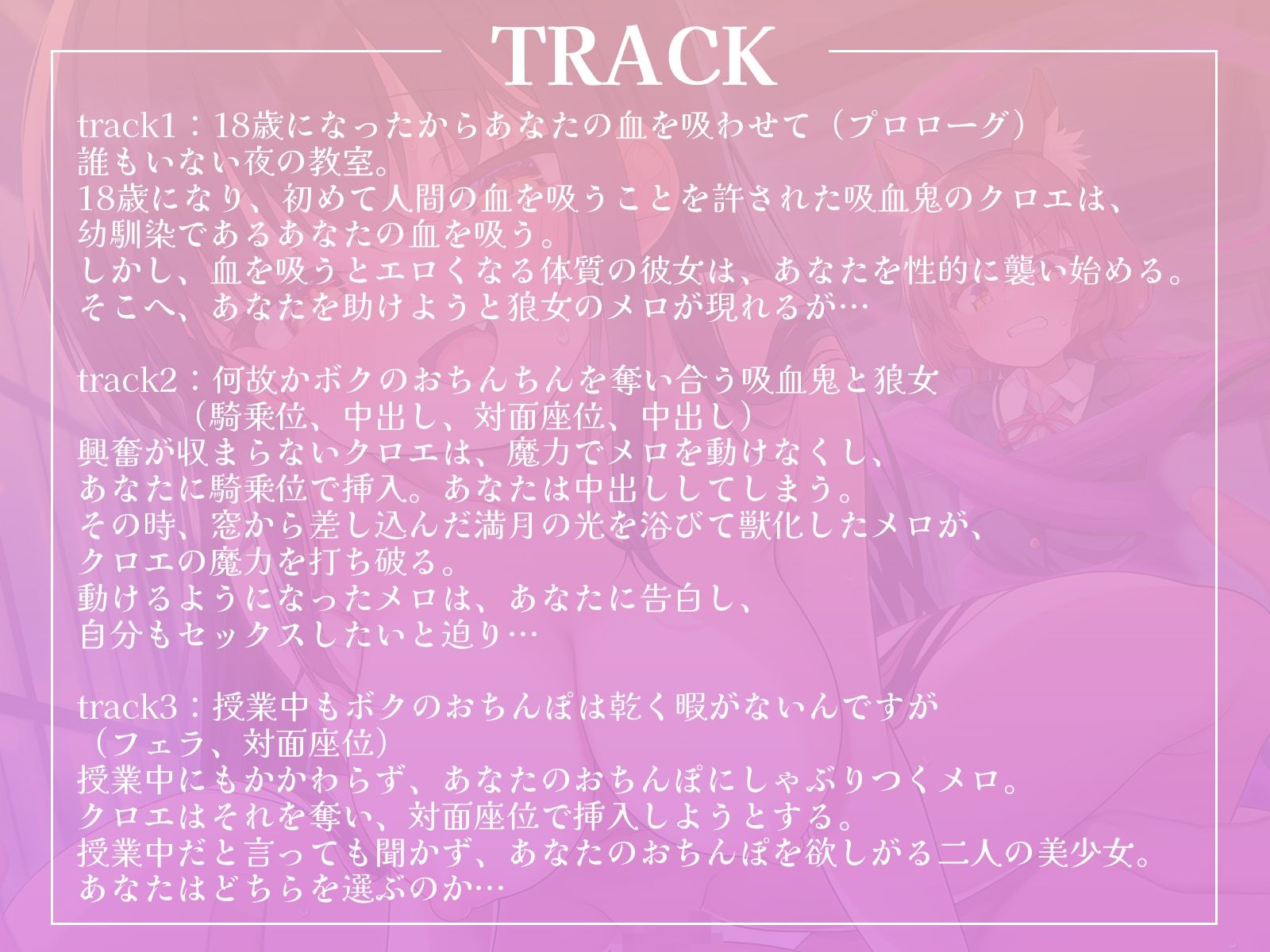 track2:何故かボクのおちんちんを奪い合う吸血鬼と狼女(騎乗位、中出し、対面座位、中出し)