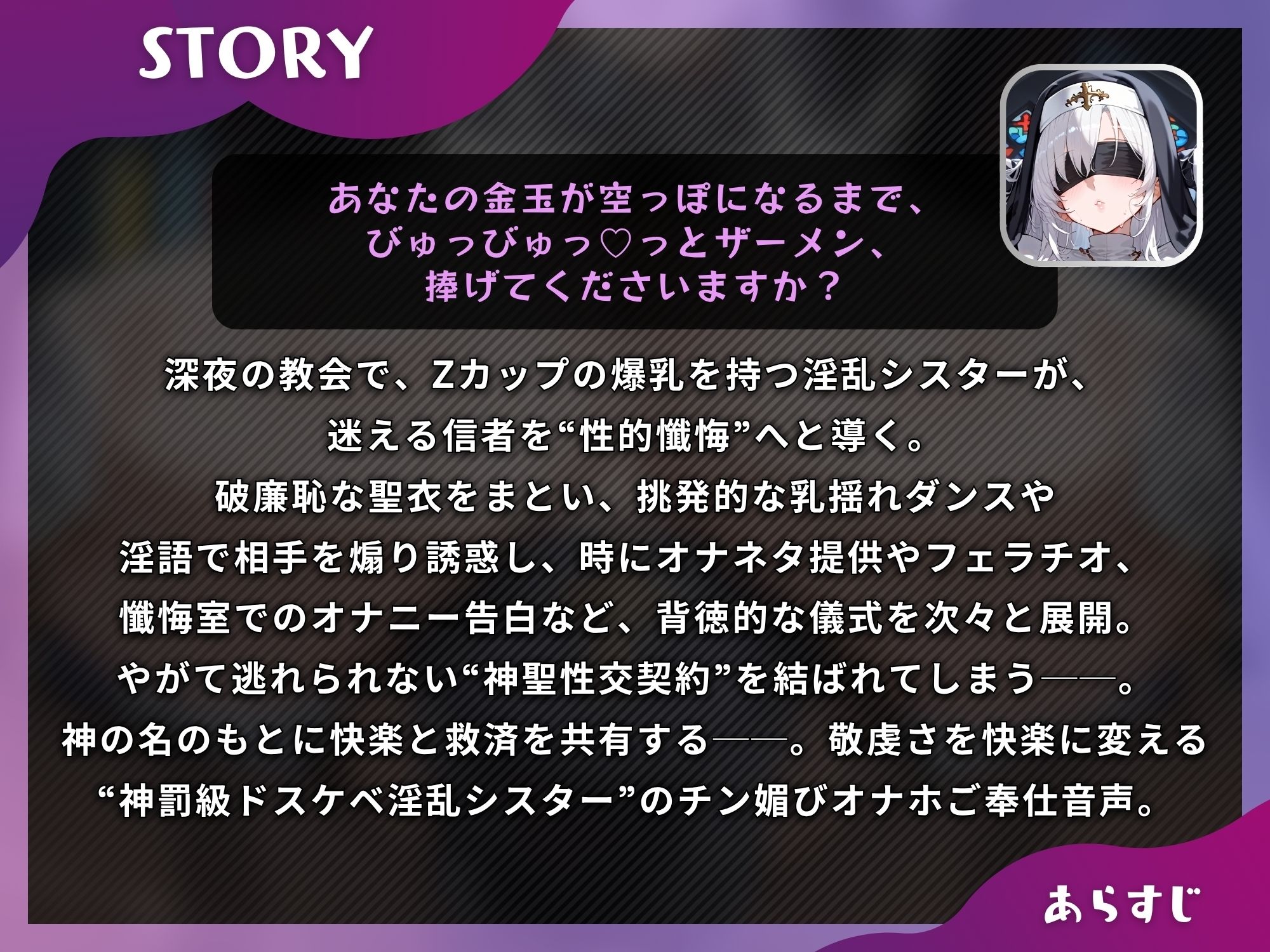 Zカップ爆乳シスターはおちんぽ様を崇拝したい(はーと)〜チン媚び淫語責めとドスケベ搾精オナホ儀式〜【S向け/KU100】 あらすじ